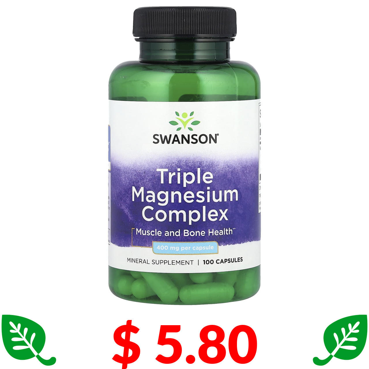 $ 5.80 Swanson, комплекс з потрійним магнієм, 400 мг, 100 капсул