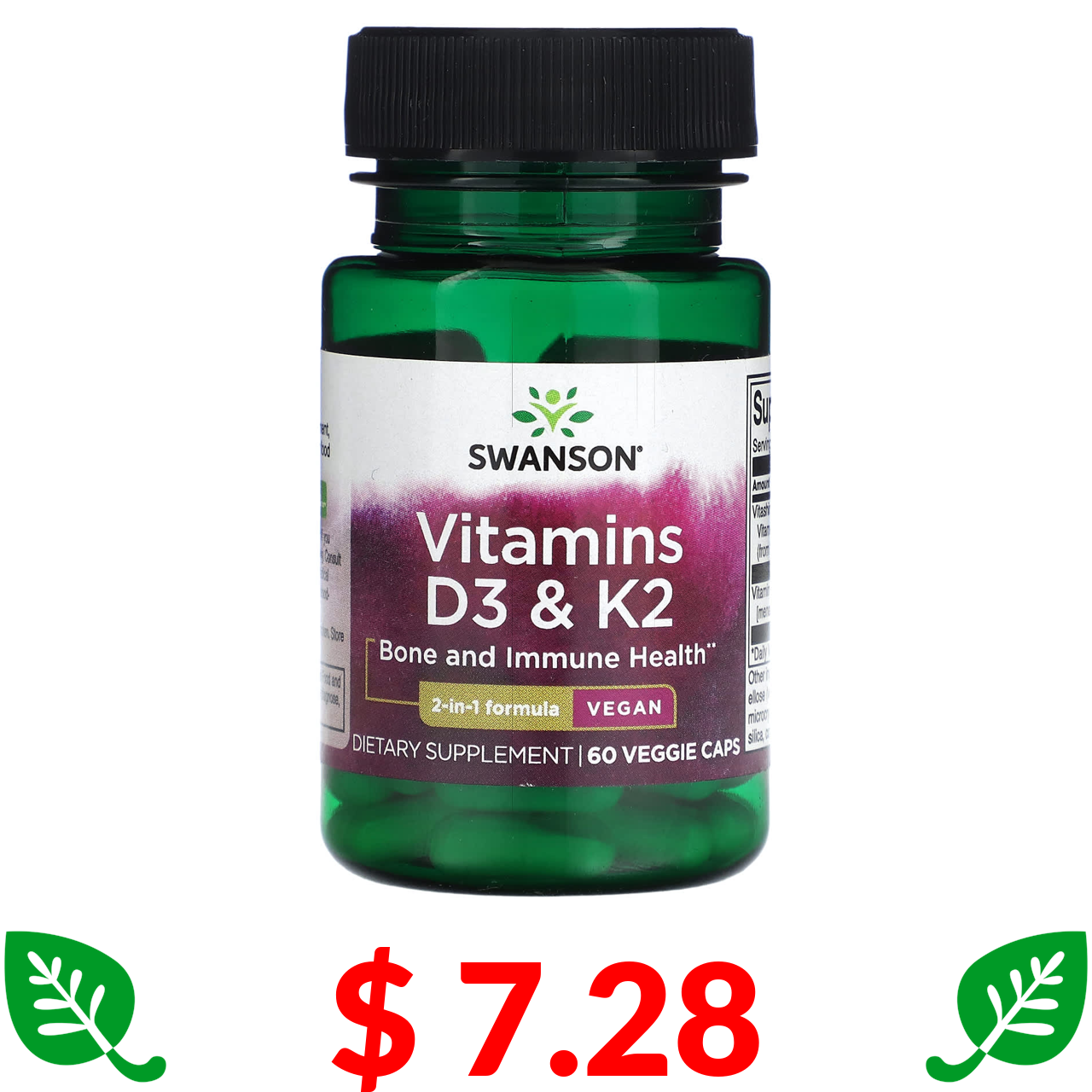 $ 7.28 Swanson, вітаміни D3 і K2, 60 веганських капсул