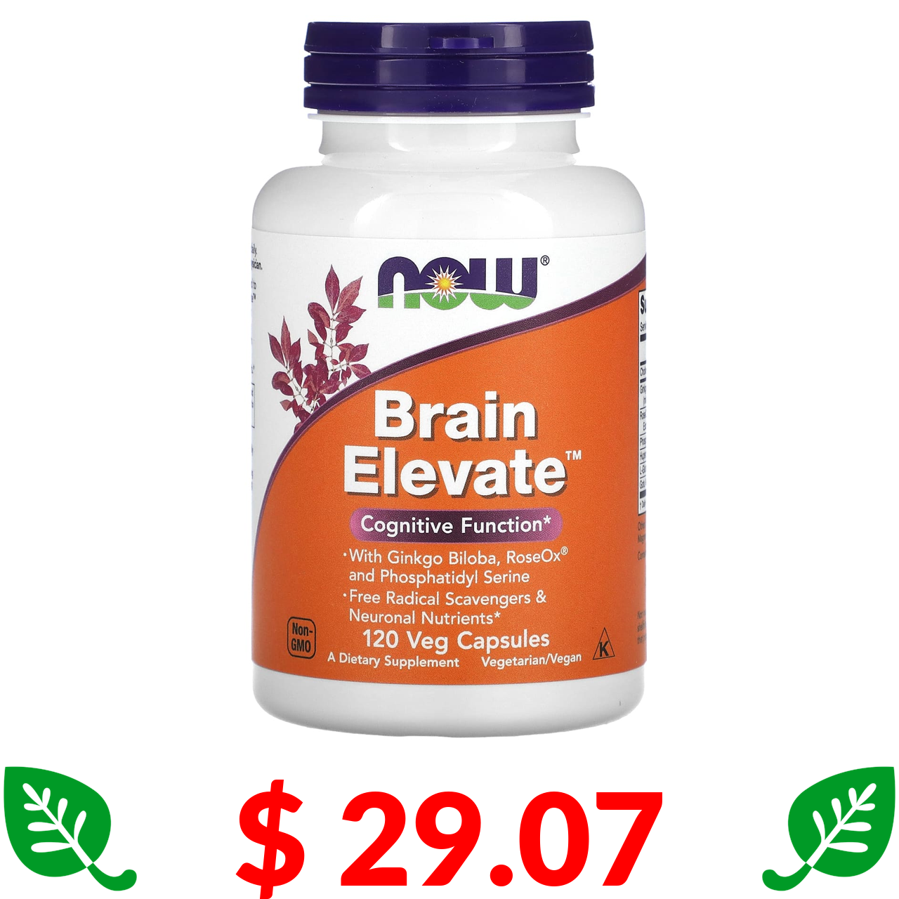 $ 29.07 Now Foods, Brain Elevate, добавка для підтримки роботи мозку, 120 вегетаріанських капсул