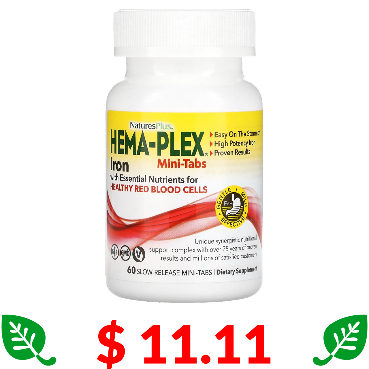 $ 11.07 Nature's Plus, Hema-Plex, 60 швидкодіючих капсул