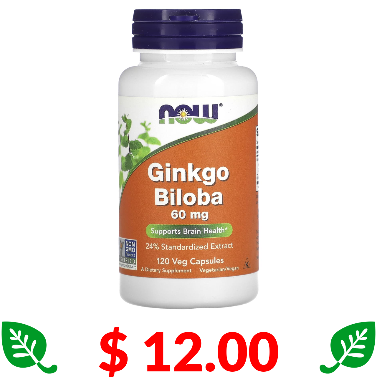 $ 12.00 Now Foods, гінкго білоба, 60 мг, 120 вегетаріанських капсул