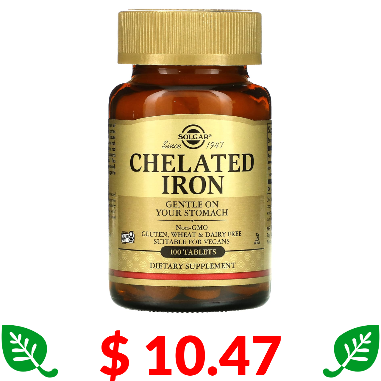 $ 10.47 Solgar, хелатне залізо, 100 таблеток