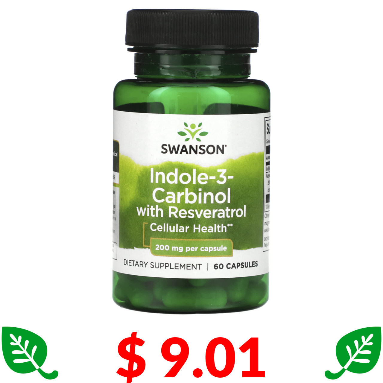 $ 9.01 Swanson, індол-3-карбінол із ресвератролом, 200 мг, 60 капсул