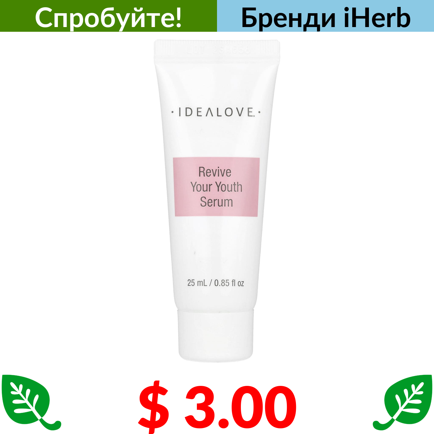 $ 3.00 Idealove, Revive Your Youth, омолоджувальна сироватка, пробник, 25 мл (0,85 рідк. унції)