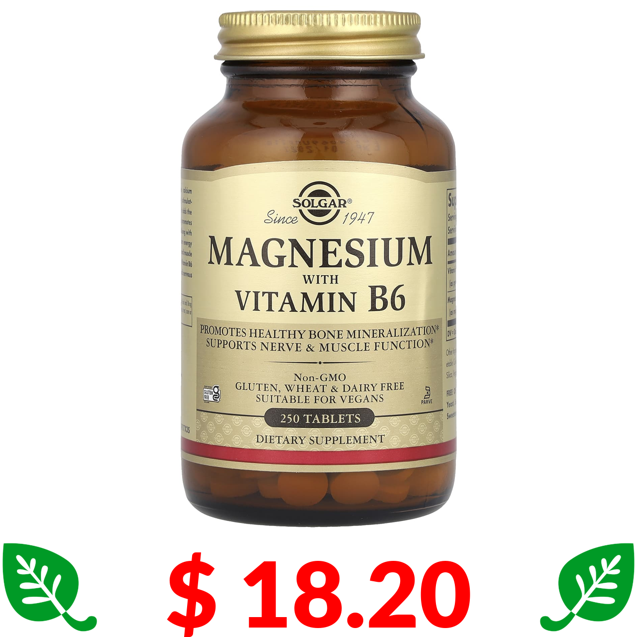 $ 18.20 Solgar, магній із вітаміном В6, 250 таблеток