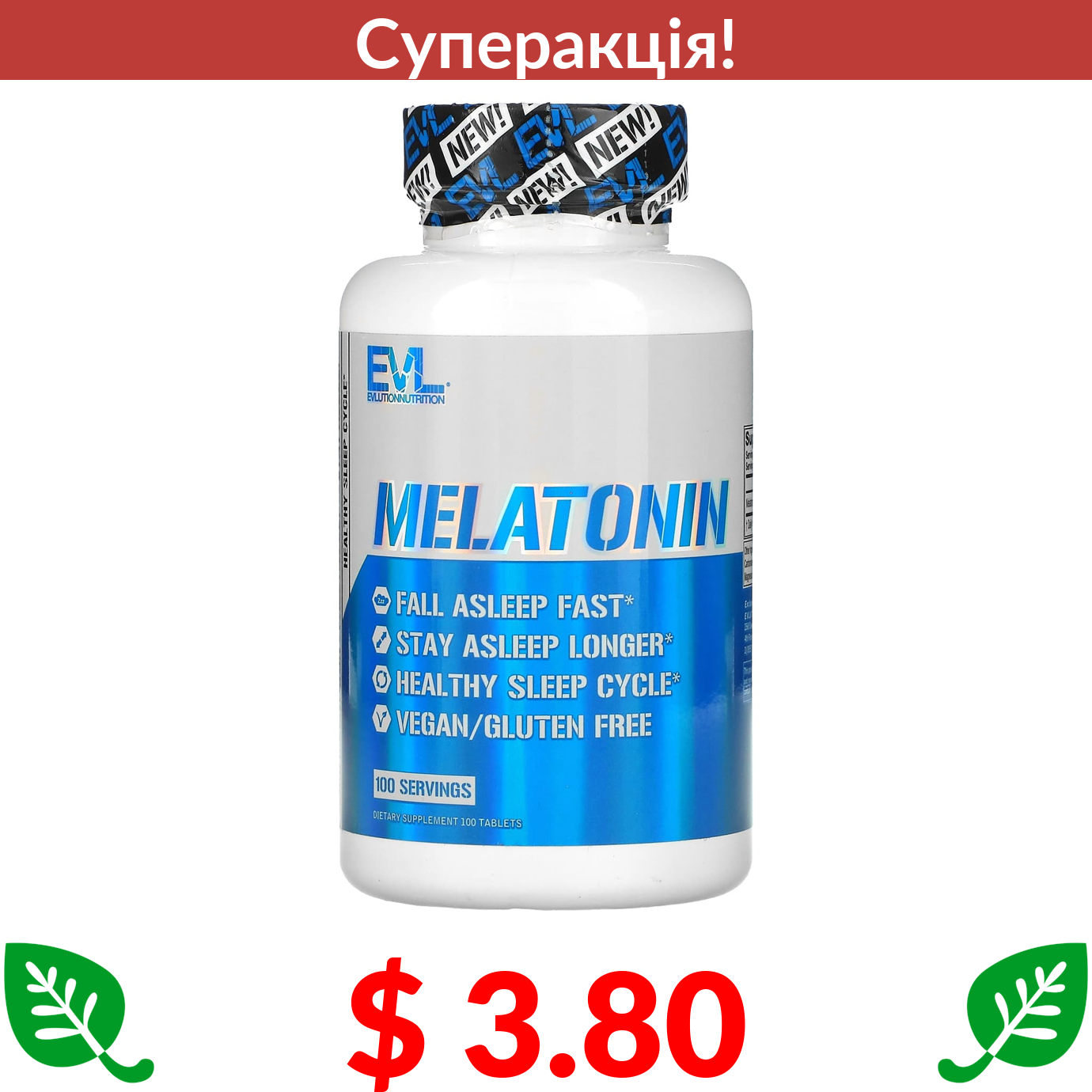 $ 3.80 EVLution Nutrition, мелатонін, 100 таблеток
