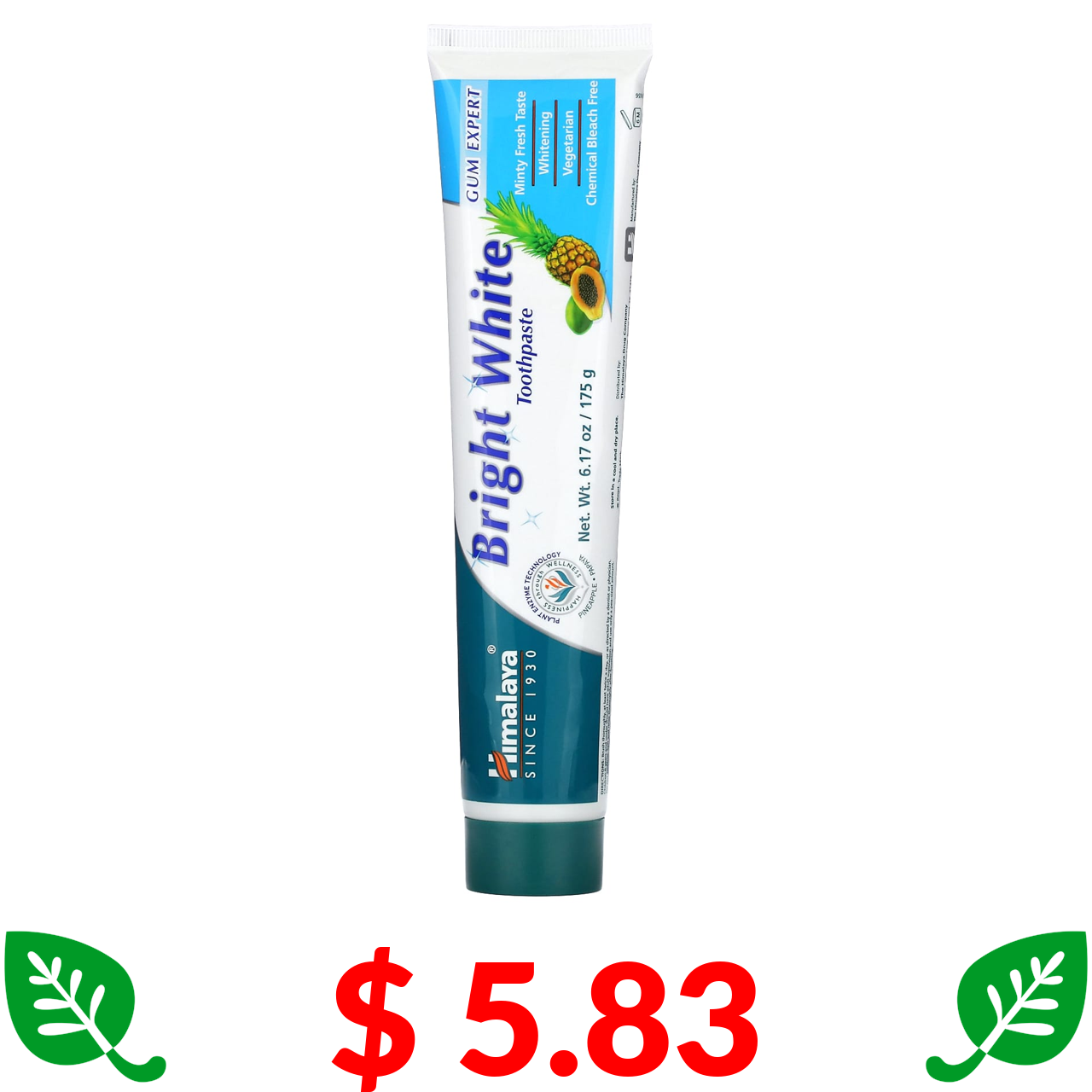 $ 5.83 Himalaya, Bright White, зубна паста з ананасом і папайєю, 175 г (6,17 унції)