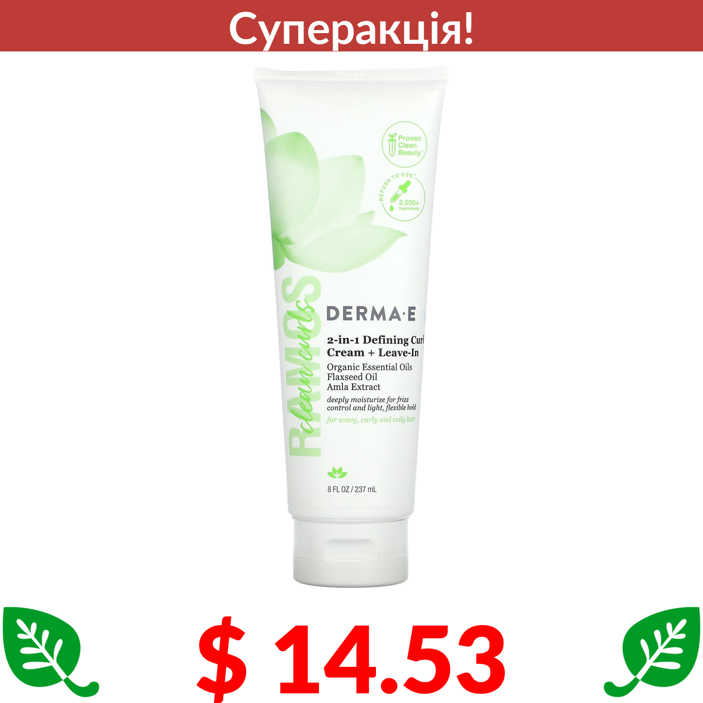 $ 14.53 DERMA E, Ramos, очищувальний крем для локонів 2 в 1, незмивний, 237 мл (8 рідк. унцій)