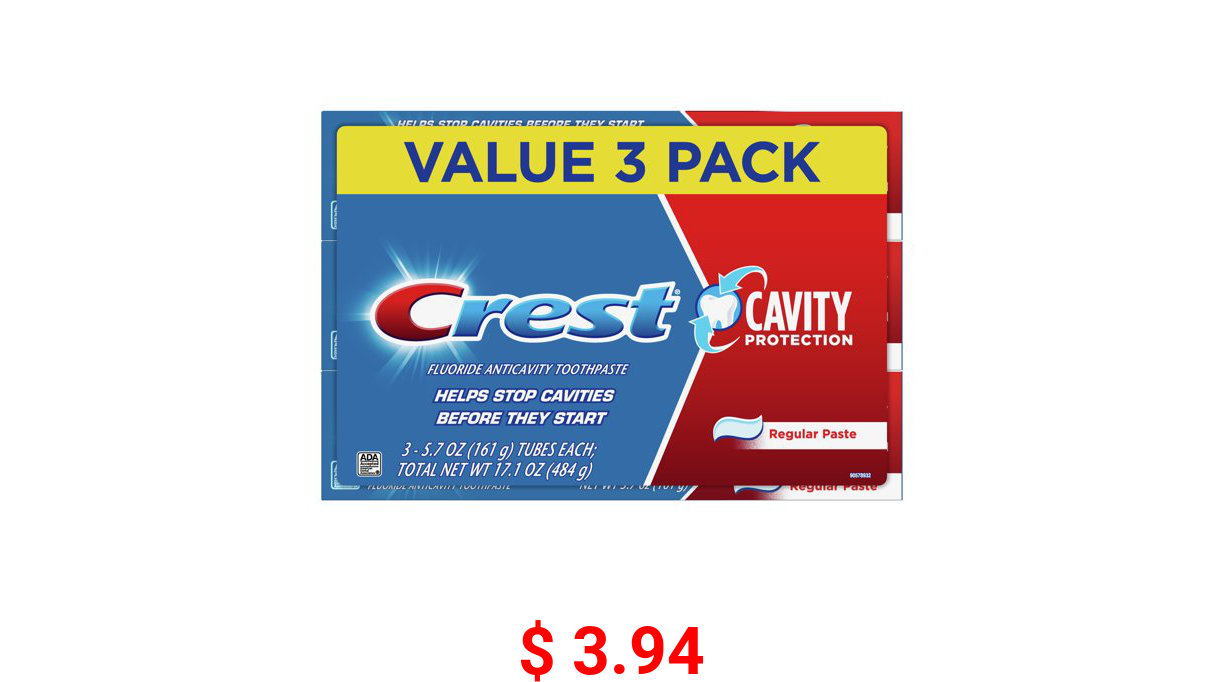 π° $ 3.94 Crest Cavity Protection Toothpaste, Regular Paste, 5.7 oz, 3 Pack