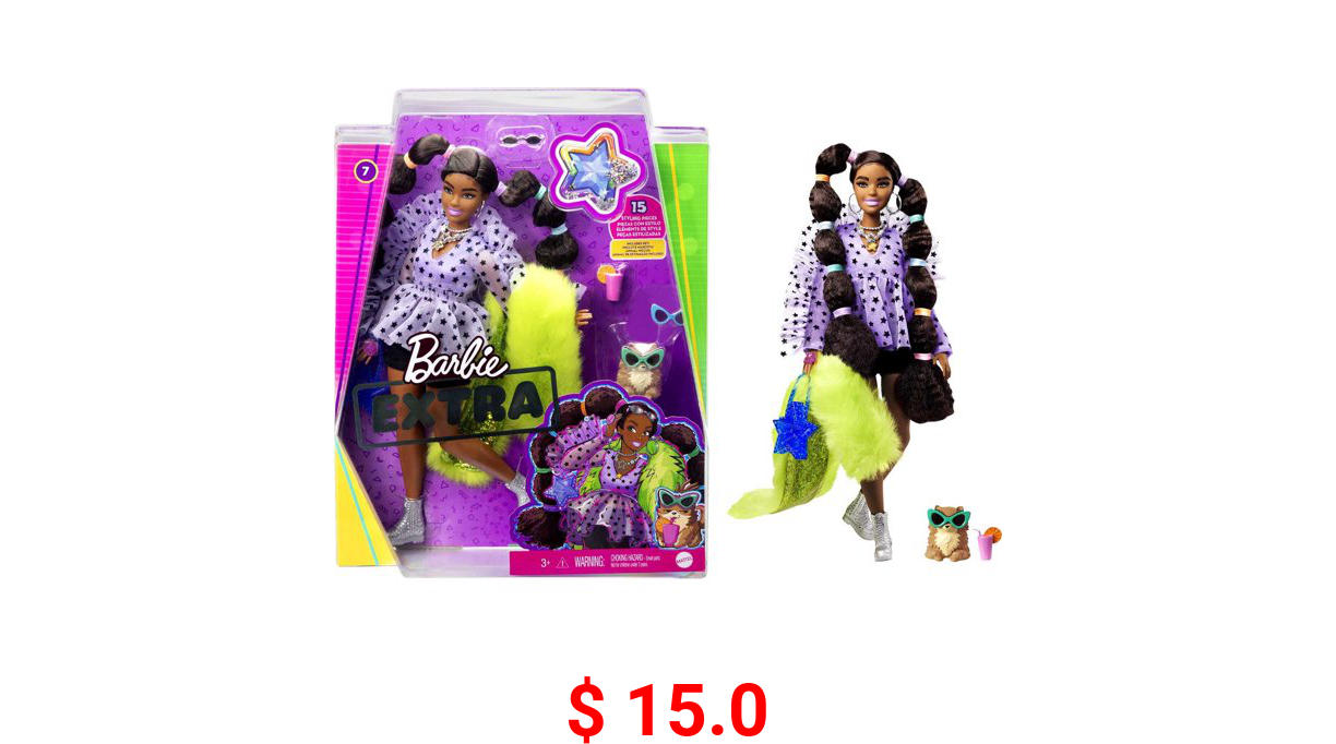 π° $ 15.0 Barbie Extra Doll #11 in Oversized Tee & Leggings with Pet, for Kids 3 Years Old & Up