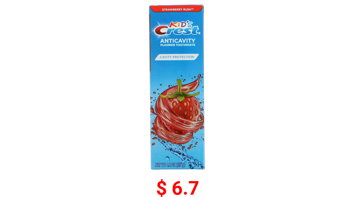 π° $ 6.7 Crest Anticavity Fluoride Toothpaste Kids, Strawberry Rush, 4.2 Oz