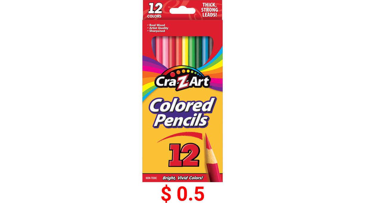 π° $ 0.5 Cra-Z-Art Real Wood, Pre-sharpened Strong Colored Pencils, 12 Count