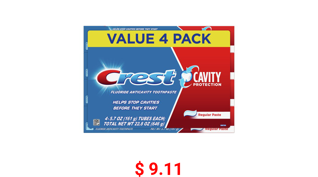 π° $ 9.11 Crest Cavity Protection Toothpaste, Regular Paste, 5.7 oz, Pack of 4