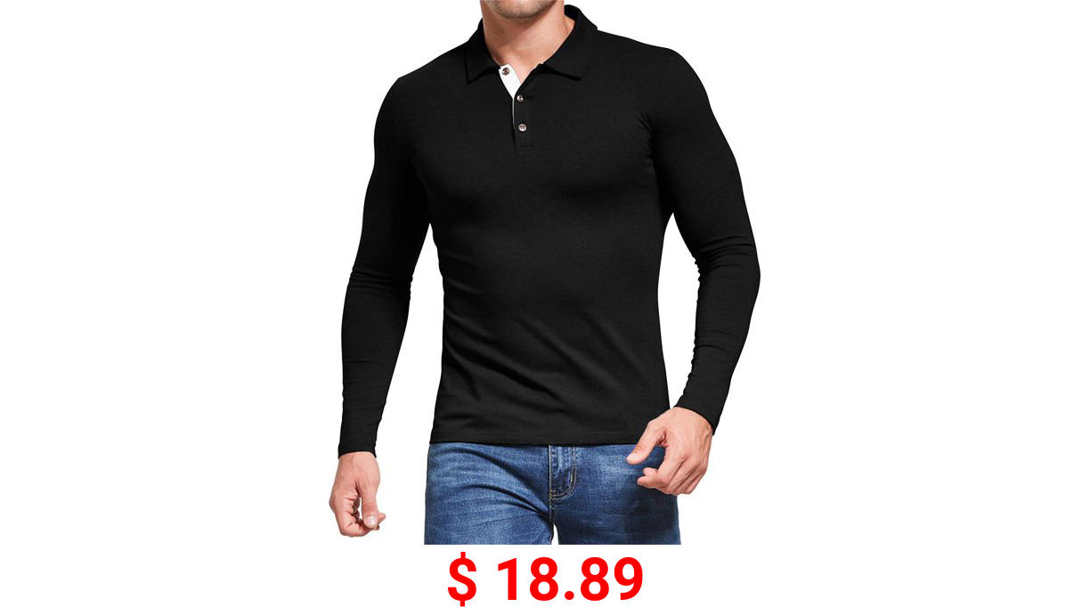 π° $ 18.89 Aiyino Men's Long Sleeve Polo Shirts Casual Slim Fit Basic Designed Cotton Shirts