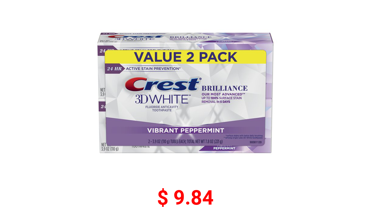π° $ 9.84 Crest 3D White Brilliance Teeth Whitening Toothpaste, Peppermint, 3.9 Oz, 2 pk