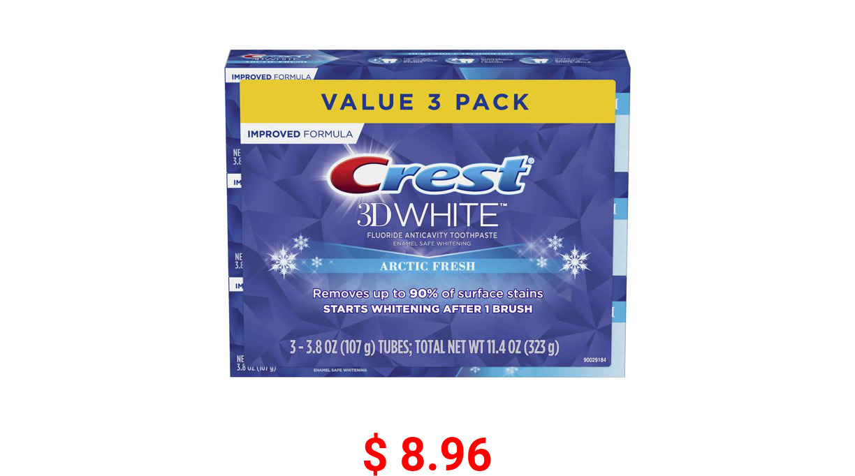 π° $ 8.96 Crest 3D White Arctic Fresh Teeth Whitening Toothpaste, 3.8 oz, Pack of 3