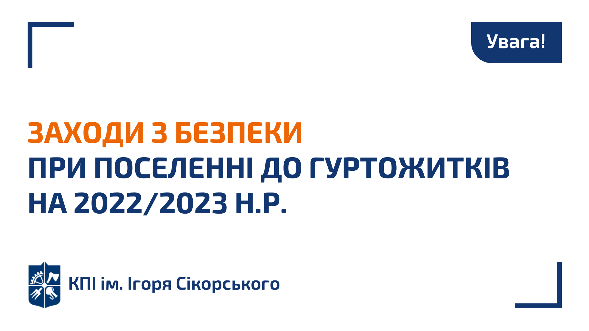 У КПІ ім. Ігоря Сікорського було проведено перевірку Державної служби з надзвичайних ситуацій України. Аналіз перевірки ДСНС, результати опитування серед здобувачів вищої освіти (лише 2000 студентів мають можливість приступити до очного навчання і повернутися до гуртожитків) та зменшення державного фінансування – довели необхідність оптимізації розміщення здобувачів у гуртожитках шляхом консервації гуртожитків № 1, 6, 10, 11 і, відповідно, переселення студентів та аспірантів до інших гуртожитків