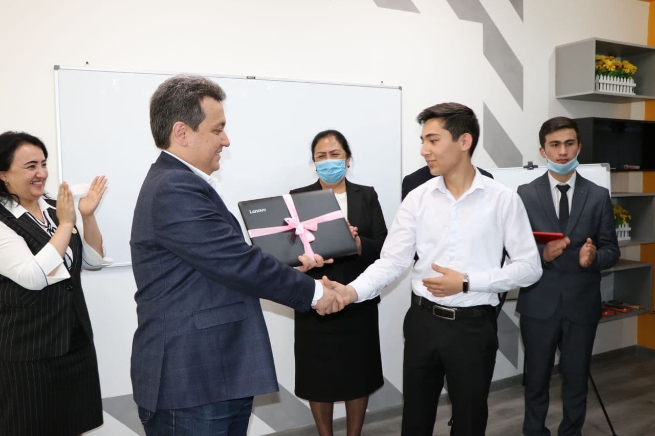 Vazir ushbu maktabning 9-sinf o‘quvchisi, o‘z frilanserlik faoliyatini yo‘lga qo‘yib, oyiga 200-300 AQSH dollari miqdorida mustaqil mablag‘ topayotgan Daler Shahmardanovning erishayotgan yutuqlarini alohida e’tirof etdi. Mana shunday iqtidorli yoshlarning safi kengayishini va ularni doim qo‘llab-quvvatlashini alohida ta’kidlab, Dalerga noutbuk sovg‘a qildi.