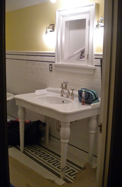 Im Bad saugt das Mädchen an seinem Pimmel