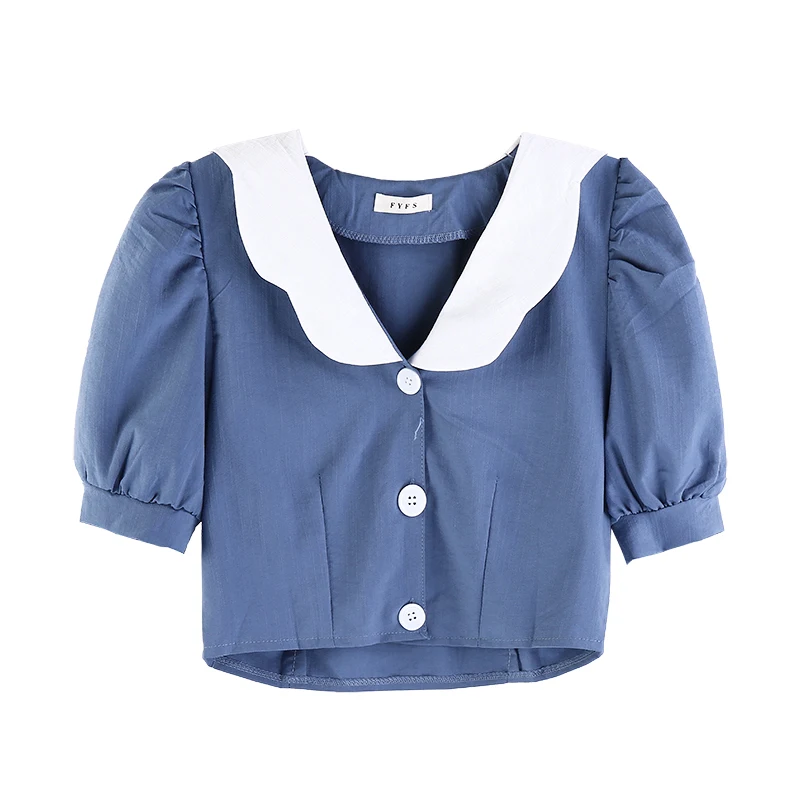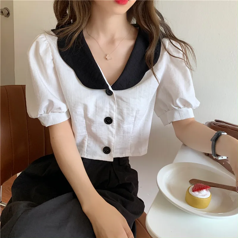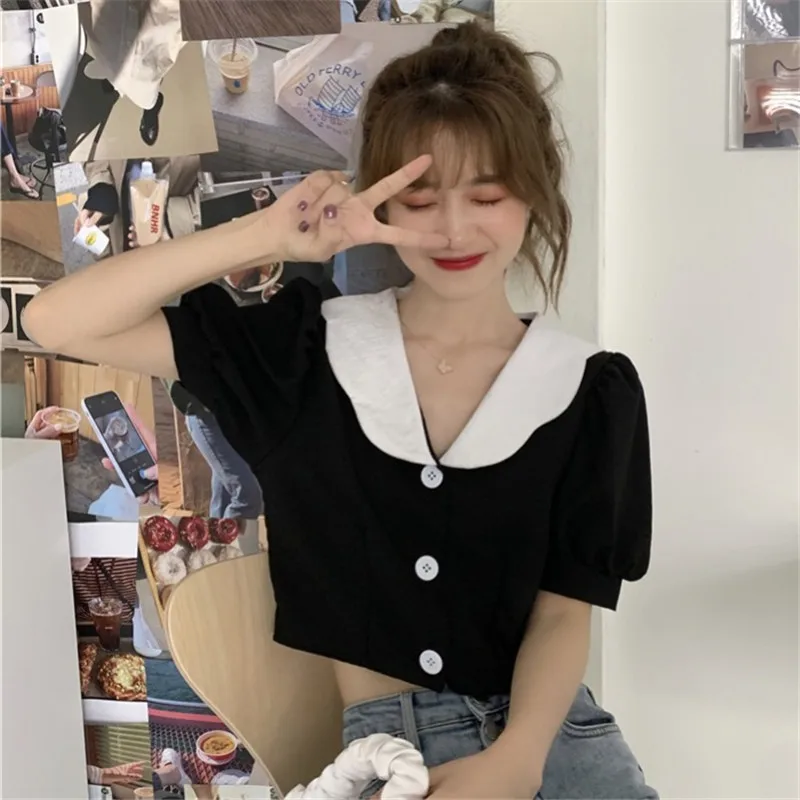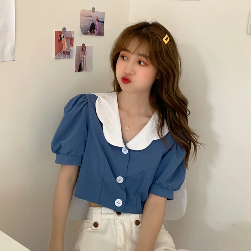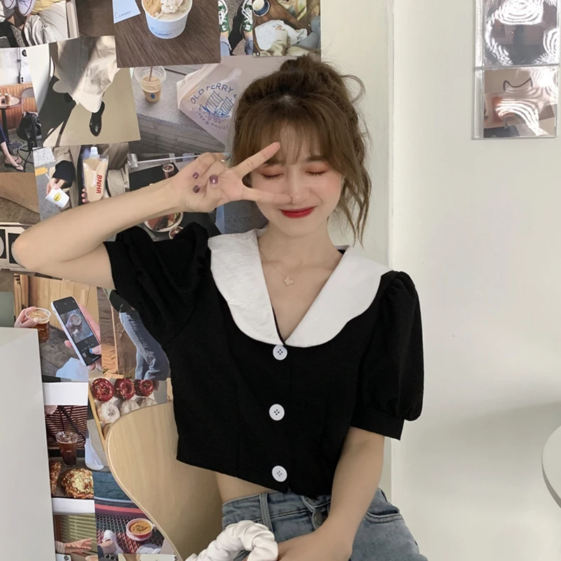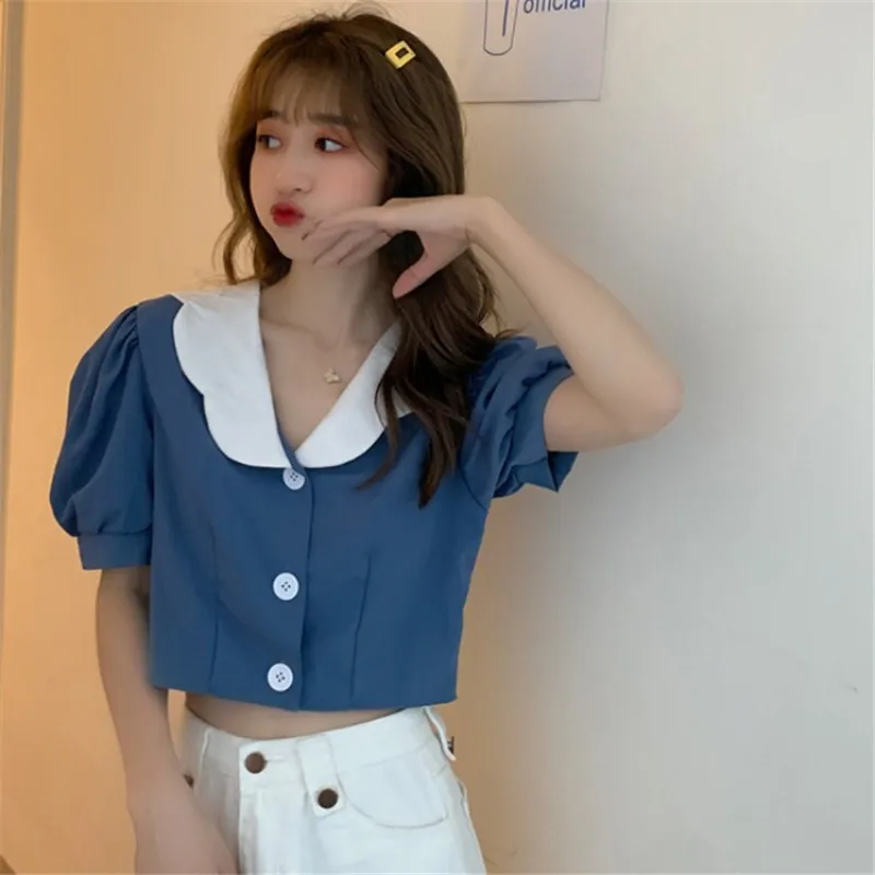 "sexy short design crop tops women blouse shirts front buttons puff sleeve blouses feminino puff casual blusas mujer" * Buy Now Just For 11$