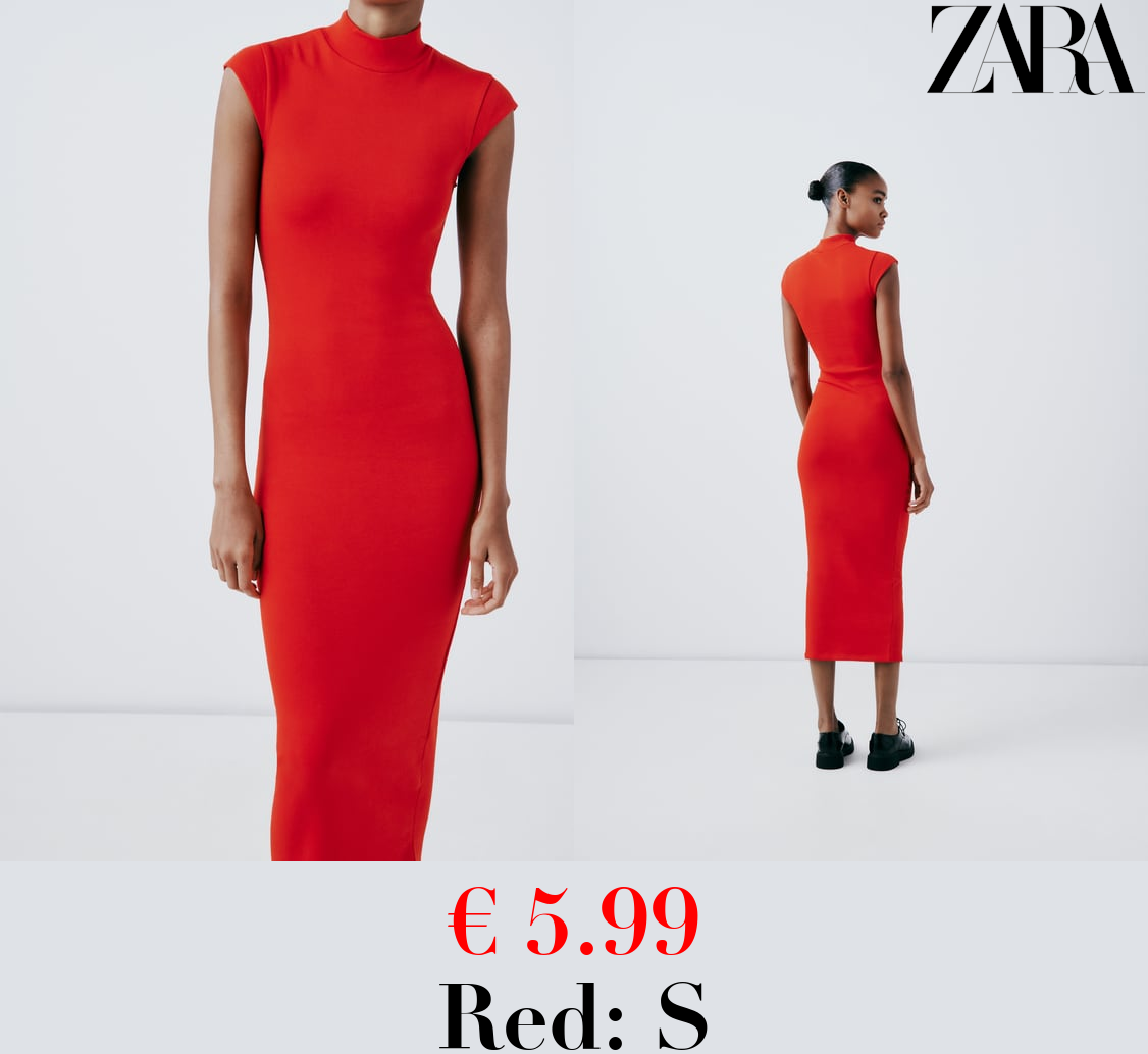 € 5.99 RIBBED MOCK TURTLENECK MIDI DRESS