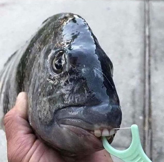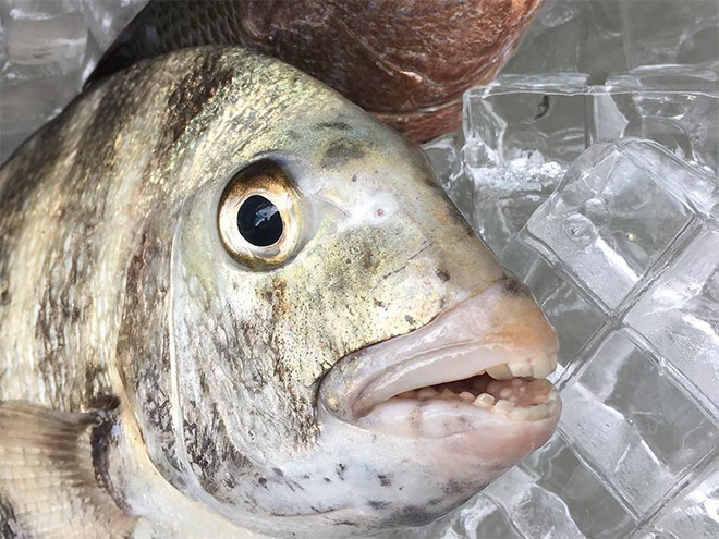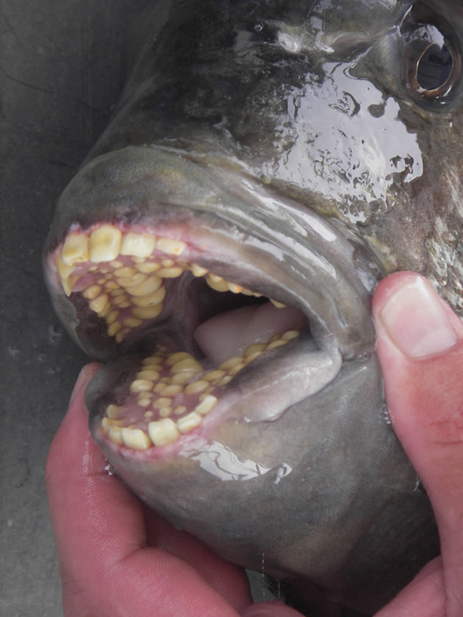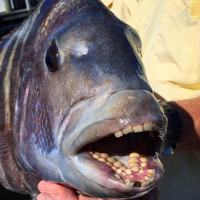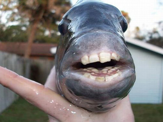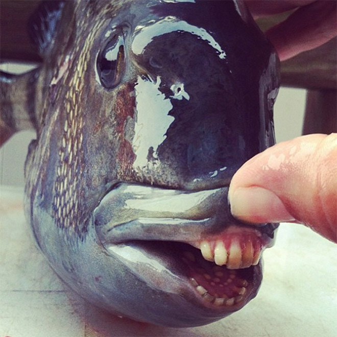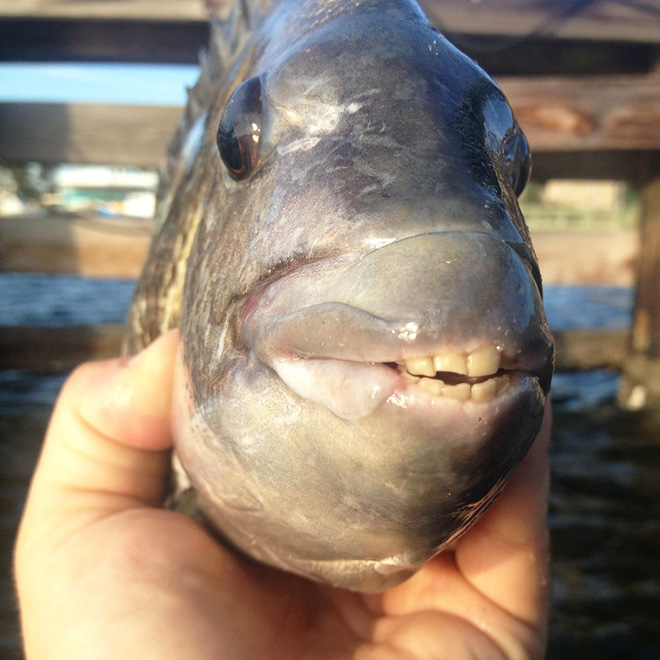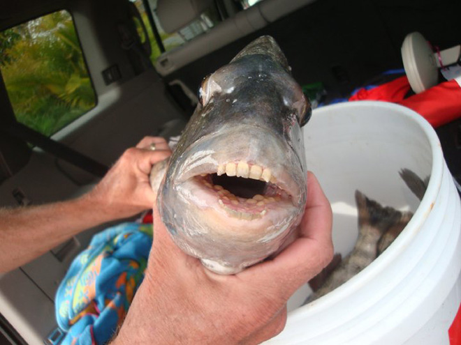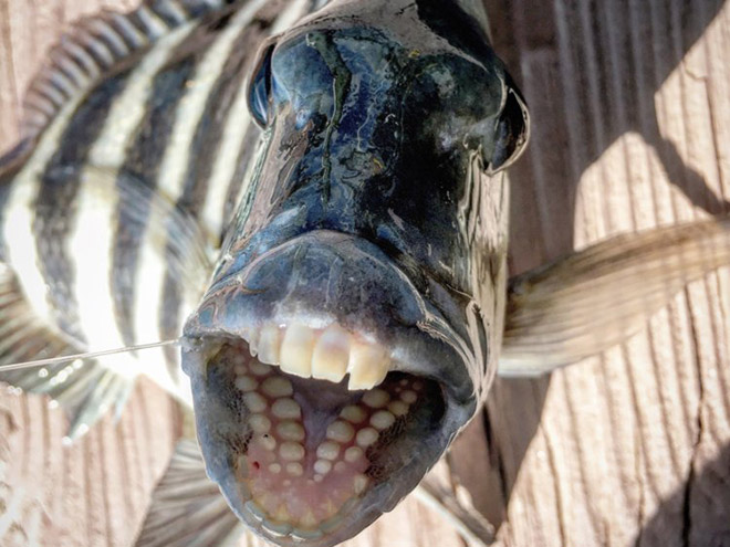sheepshead fish, humanlike teeth...