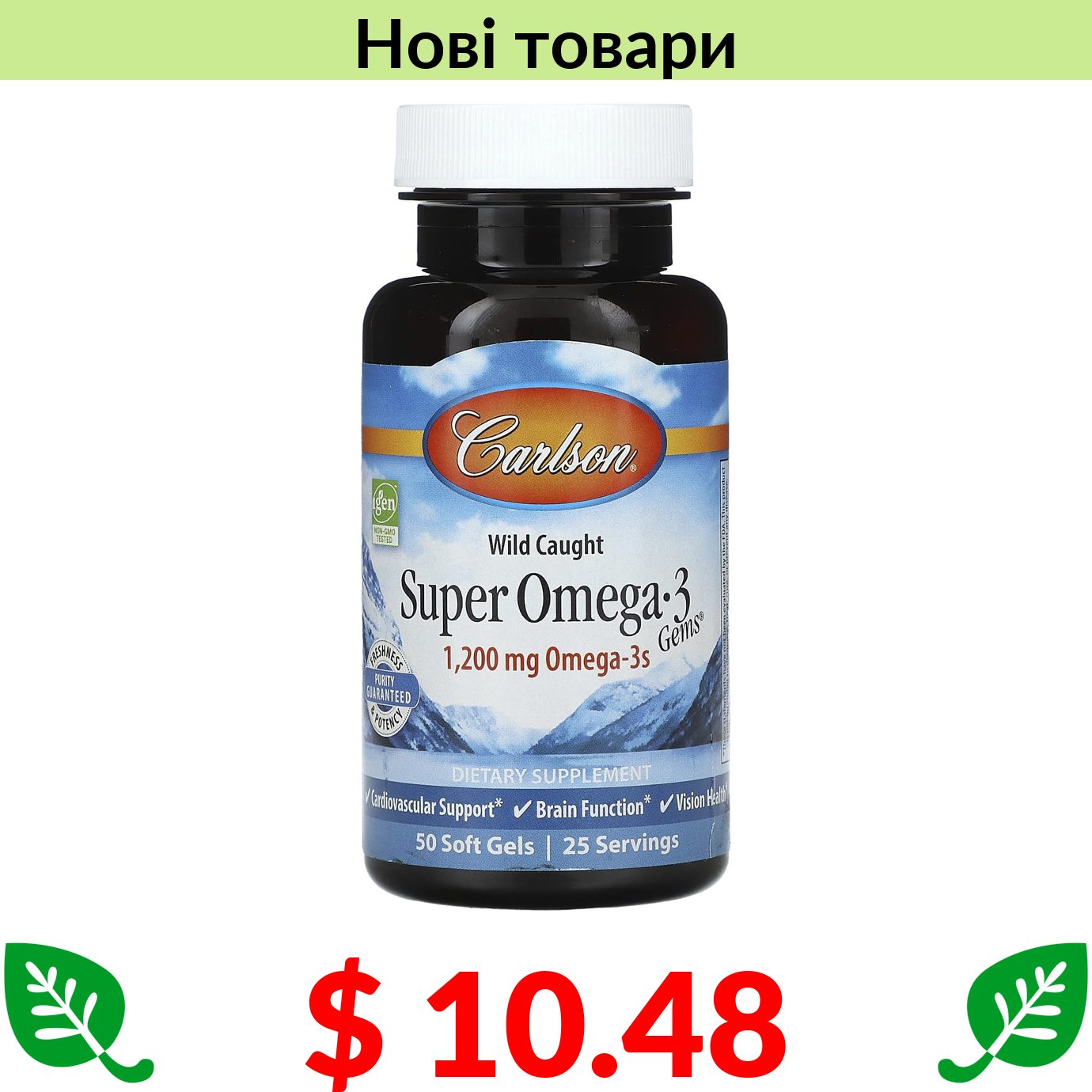 Лише $19.7 - Комбопропозиція (економія $3.0) купуйте разом з California Gold Nutrition, омега-3, риб’ячий жир преміальної якості, 180 мг ЕПК / 120 мг ДГК, 100 капсул із риб’ячого желатину