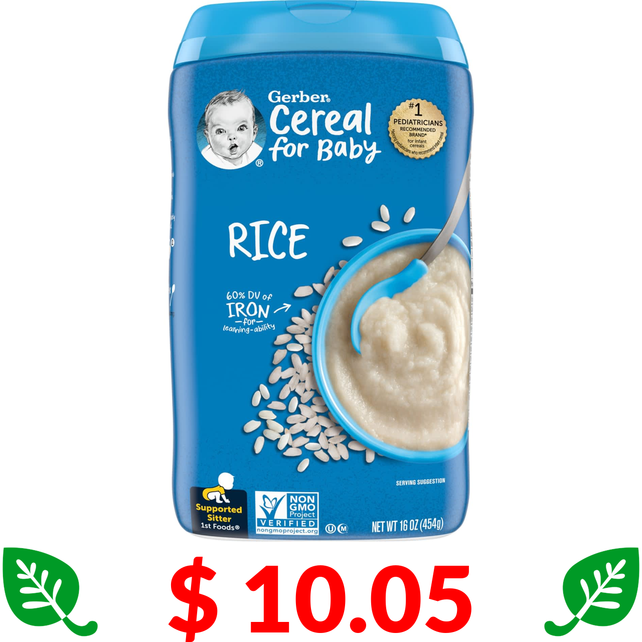 $ 10.05 Gerber, Рисова однозернова каша, 1st Foods, 16 унцій (454 г)