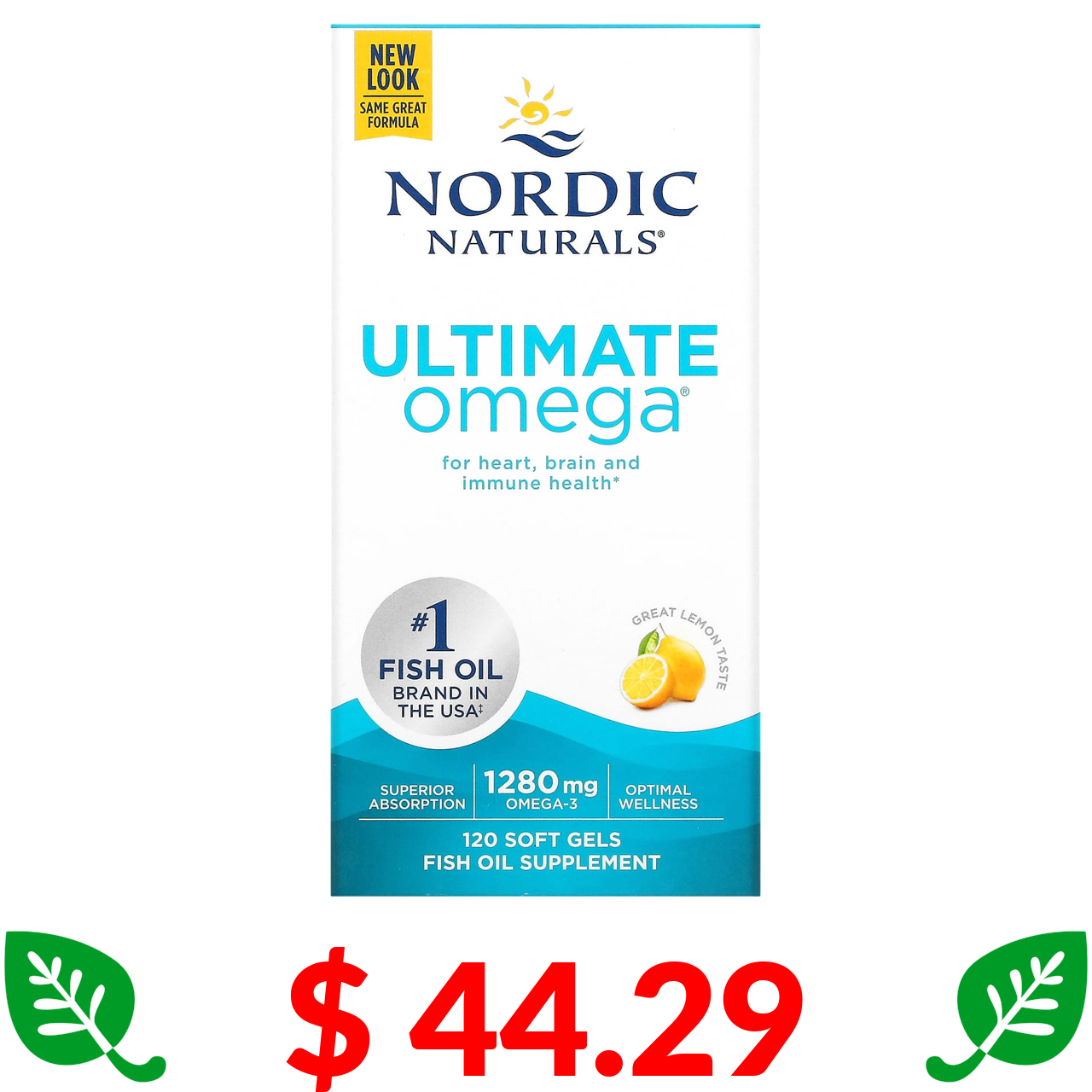 $ 44.29 Nordic Naturals, Ultimate Omega, зі смаком лимона, 640 мг, 120 капсул