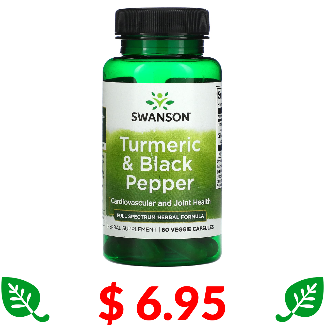 $ 6.95 Swanson, Turmeric & Black Pepper, Cardiovascular and Joint Health, 60 Veggie Capsules