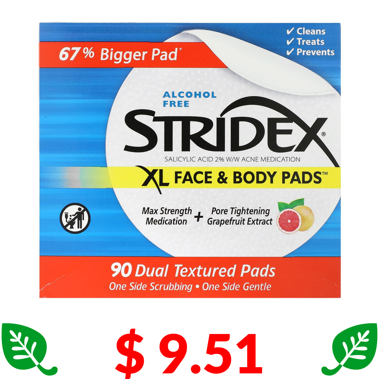 $ 9.51 Stridex, XL, гелі для обличчя та тіла, без спирту, 90 подушечок із подвійною текстурою
