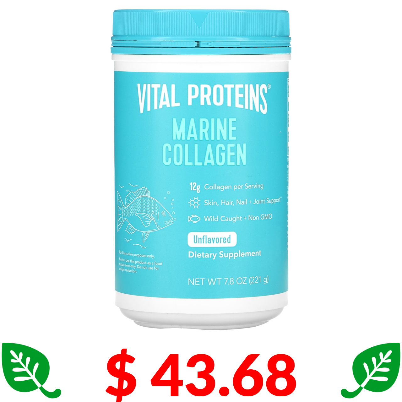 $ 43.68 Vital Proteins, морський колаген, з риби, виловленої в умовах дикої природи, без смаку, 221 г (7,8 рідк. унцій)