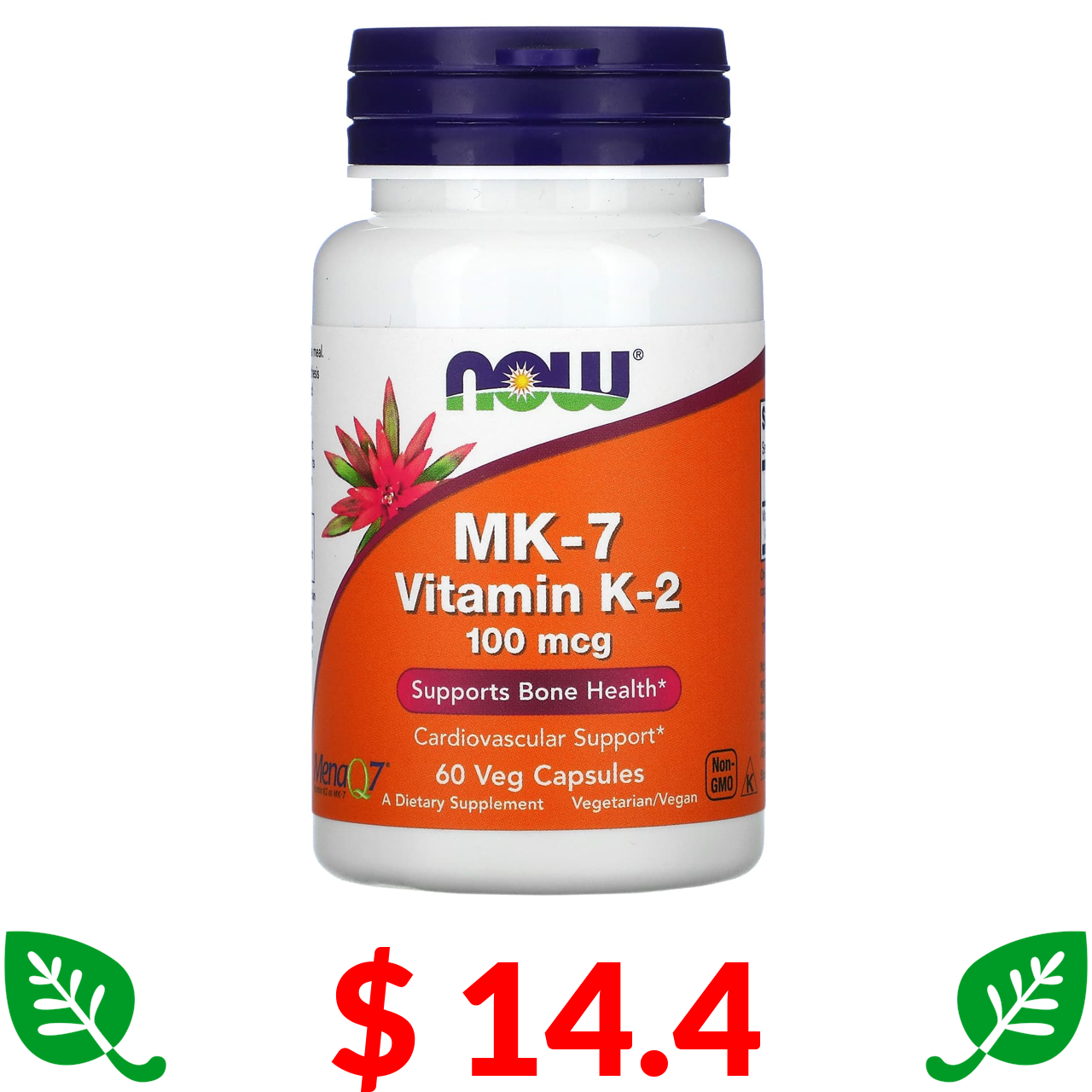 $ 14.4 Now Foods, MK-7, вітамін K2, 100 мкг, 60 вегетаріанських капсул