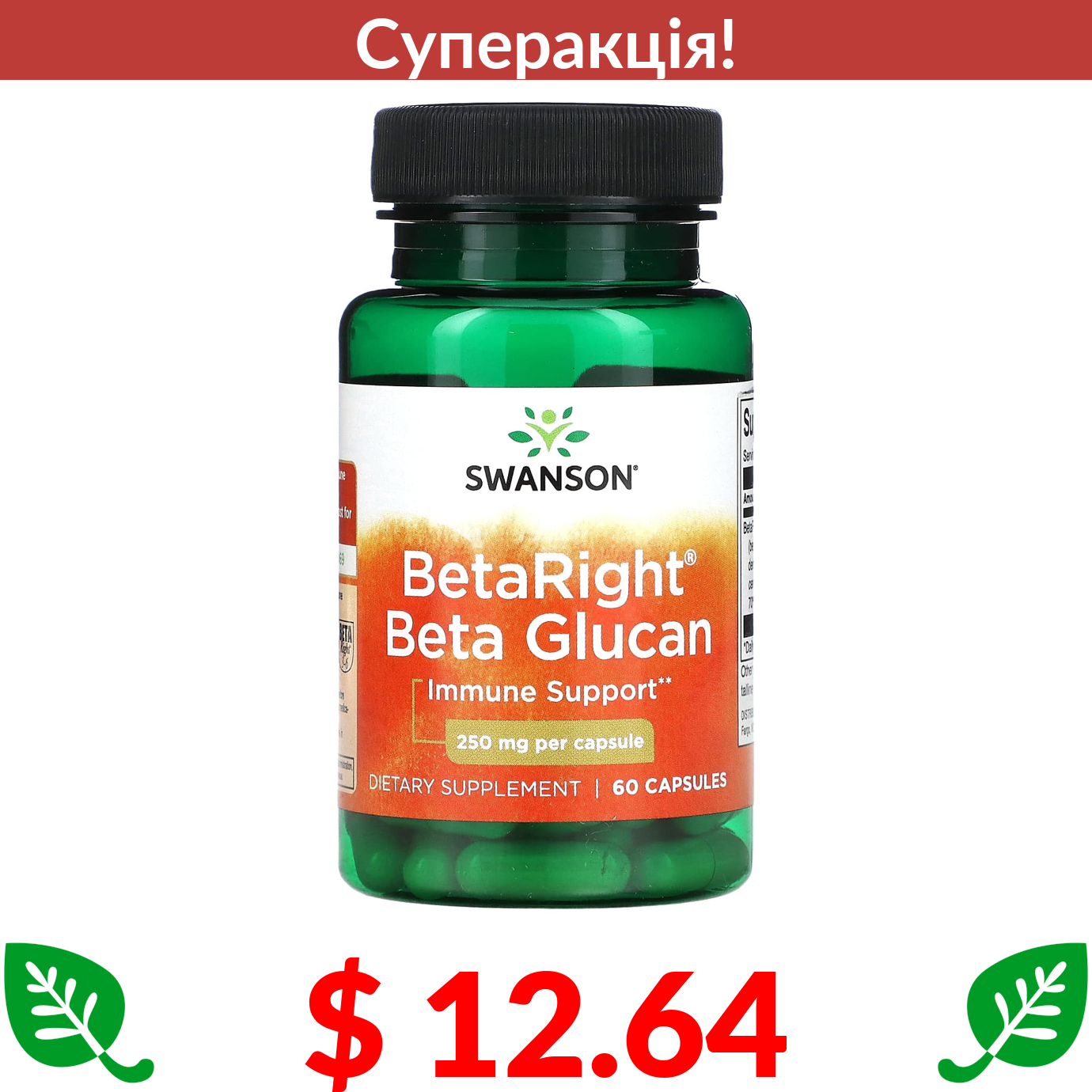 $ 12.64 Swanson, BetaRight, бета-глюкан 250 мг, 60 капсул