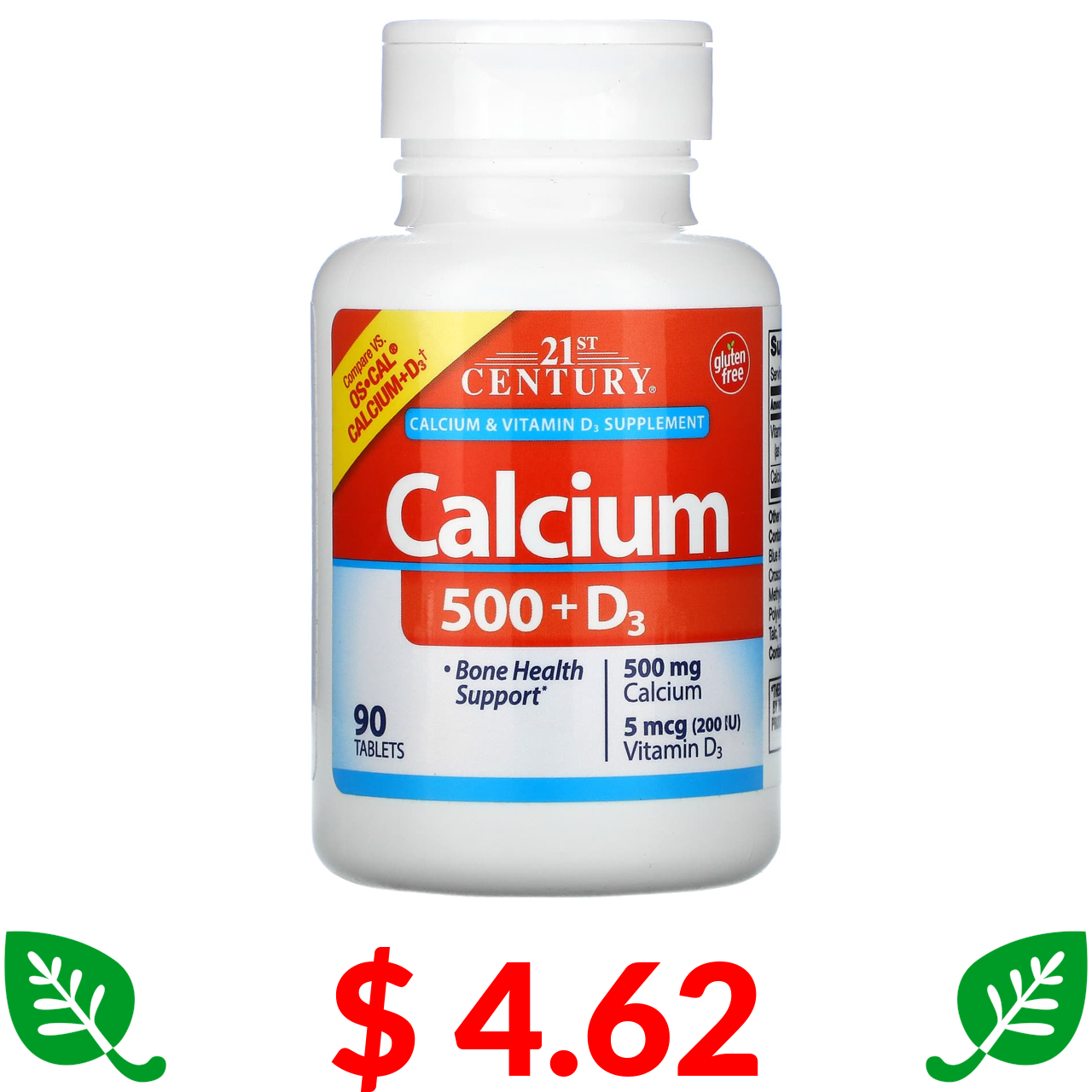 $ 4.62 21st Century, кальцій 500 з вітаміном D3, 90 таблеток