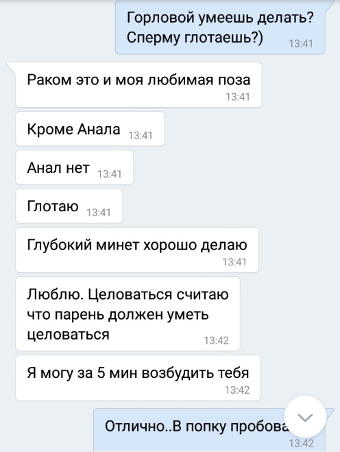 как так можно 🤷♀️У неё было всего 2 парня, и первый секс в прошлом году 🙈Однако опыта у девчонки уже не занимать)) Сказала, все любит и практикует, особенно