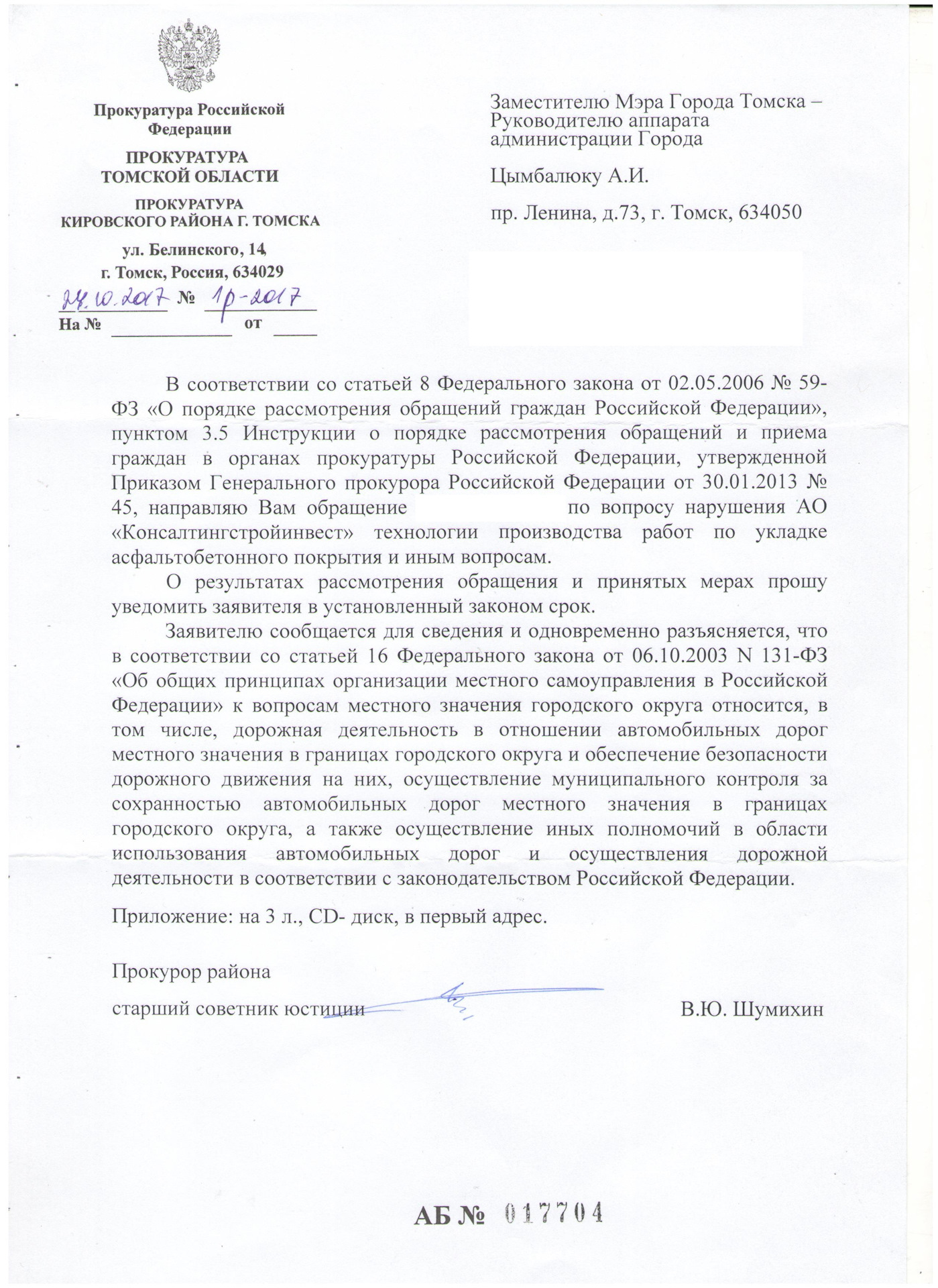 Образец уведомления о рассмотрении представления 87 фотографий