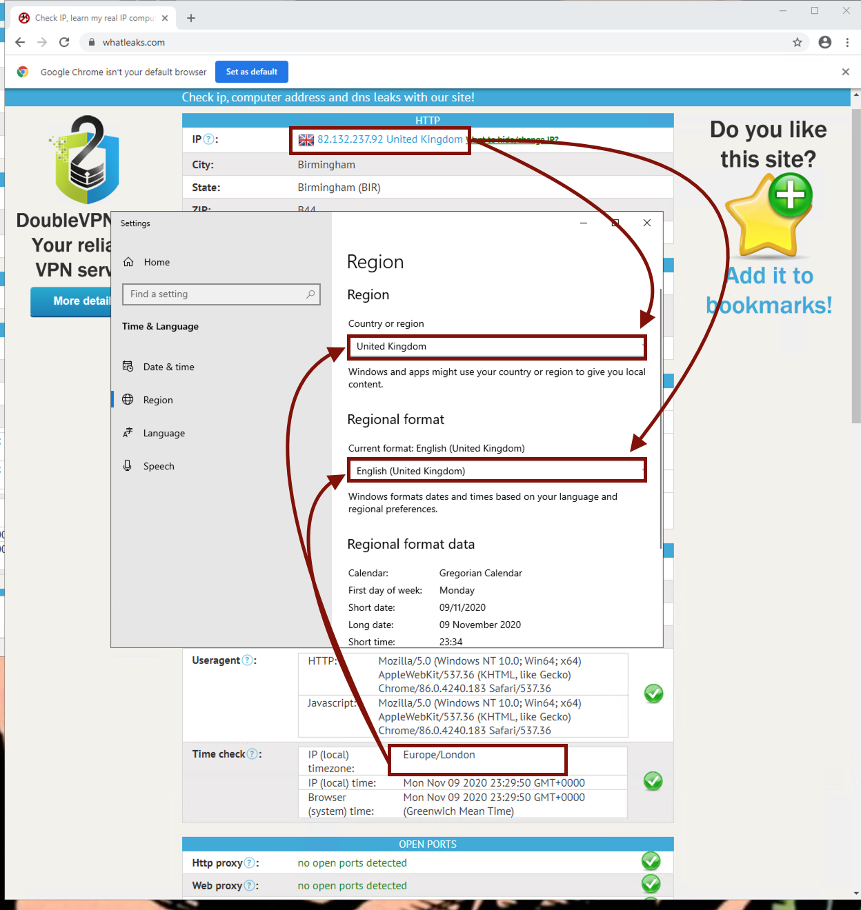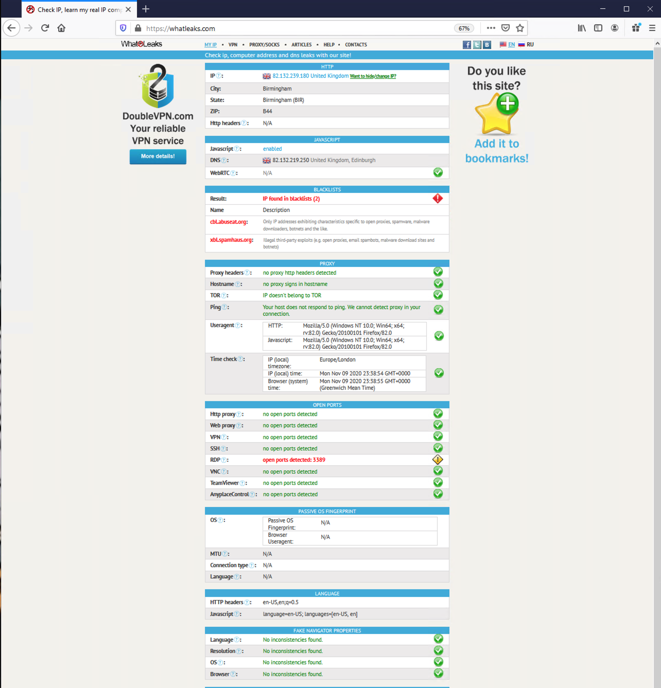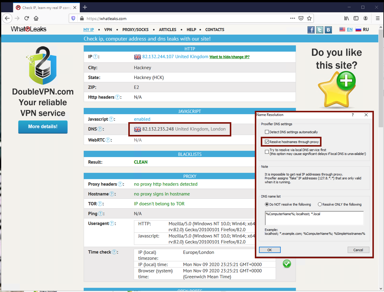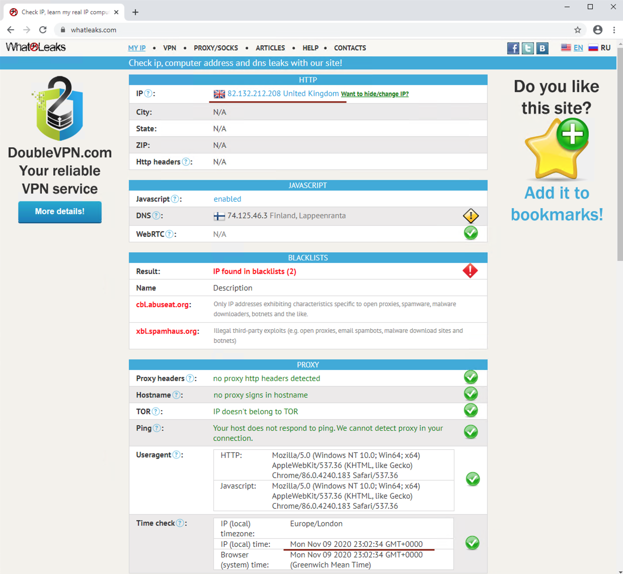 3. Time check (а вот это интереснее. соответствие вашей тайм-зоны и тайм-зоны прокси)