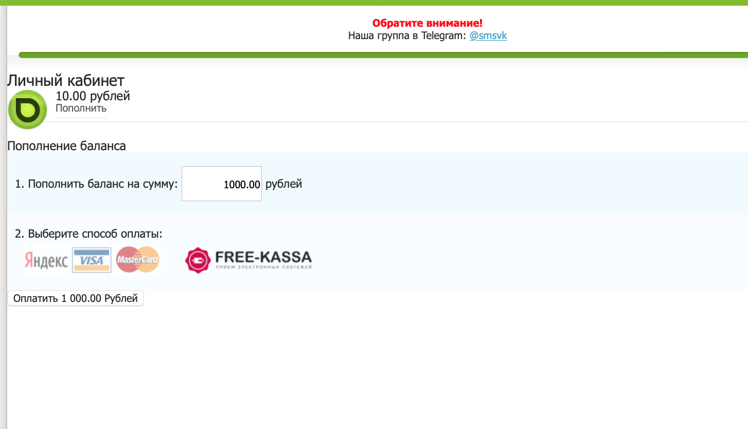 3. Введите сумму, выберите способ оплаты, тыц-клац, и вот мы соскамили у вас 10 ₽ (шутка, конечно больше)