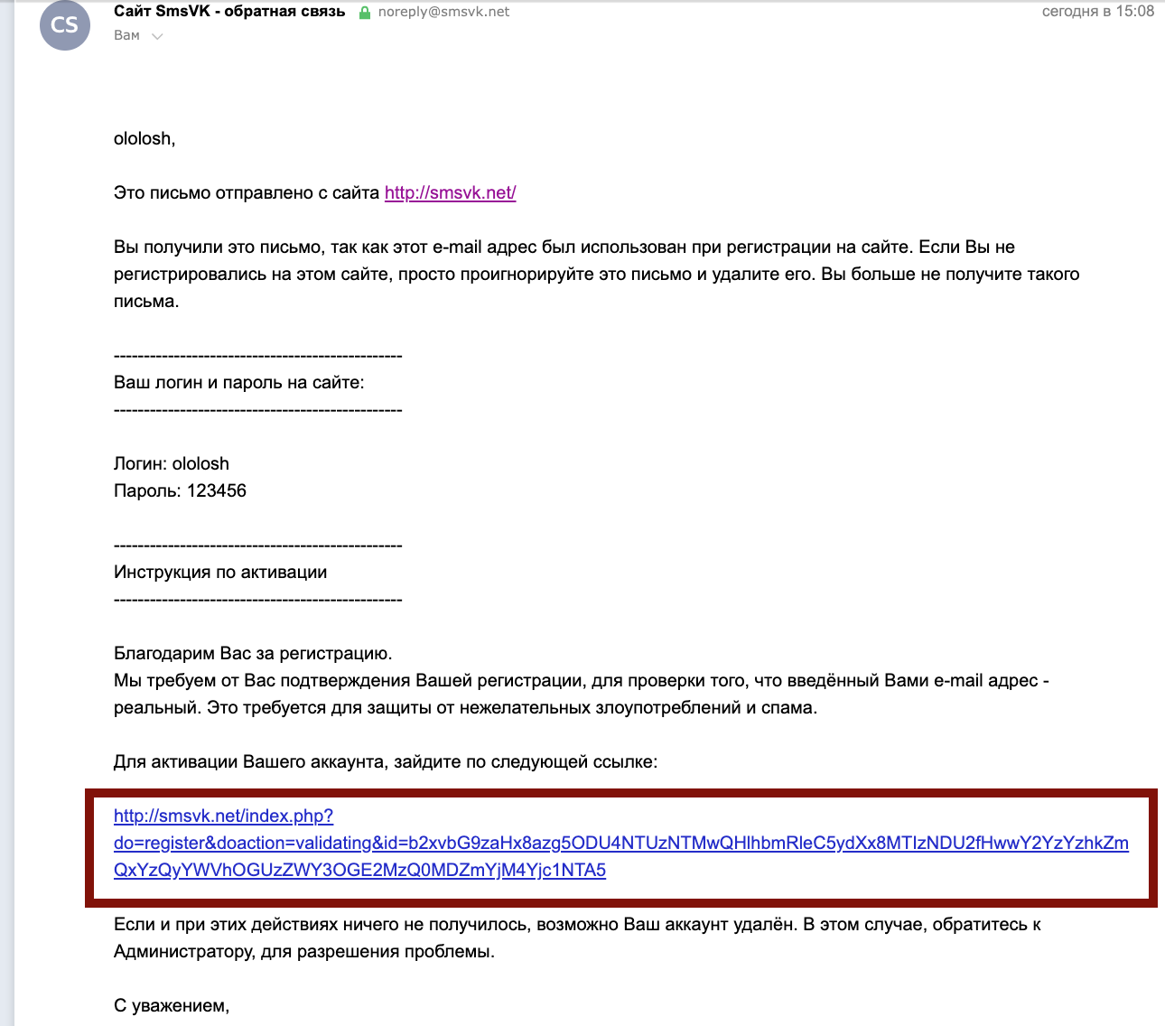 - Дождитесь письма на указанный вами e-mail, перейдите по ссылке (обведена красным)