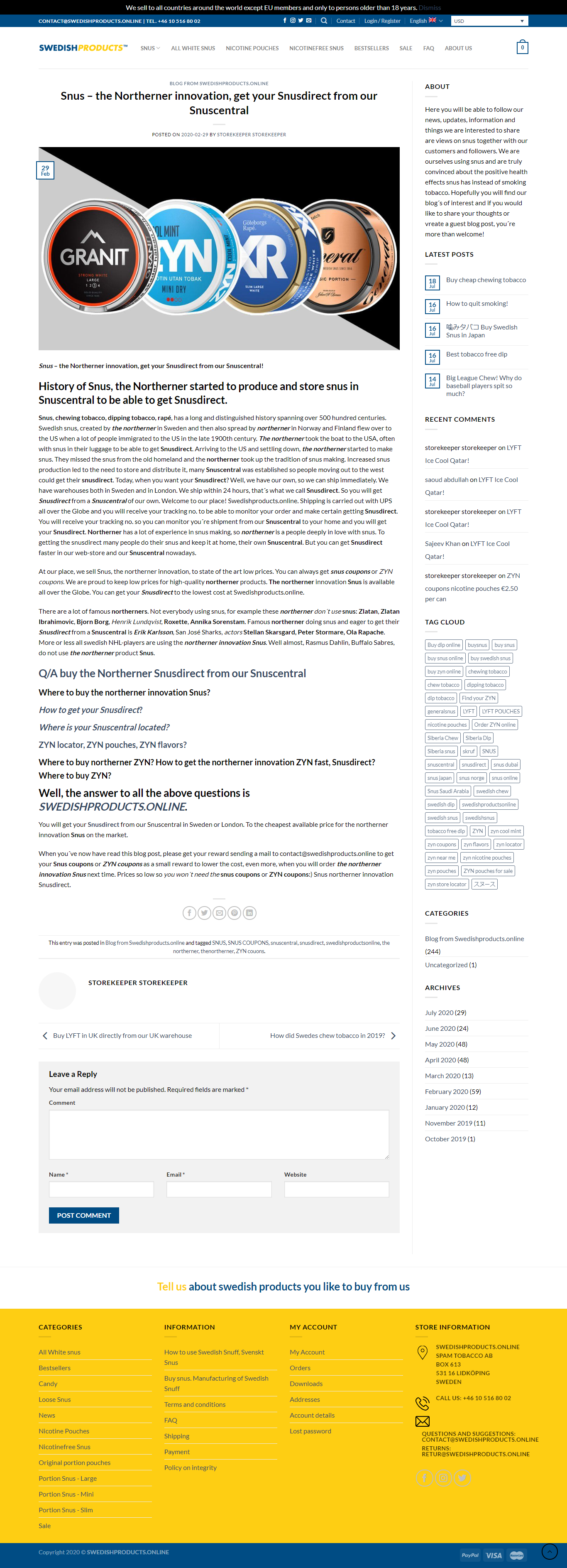 Snus - the Northerner innovation, get your Snusdirect from our Snuscentral! UPS, 3-4 days worldwide. Snus, $2-3 per can. Seller insurance with Paypal. snuscentral