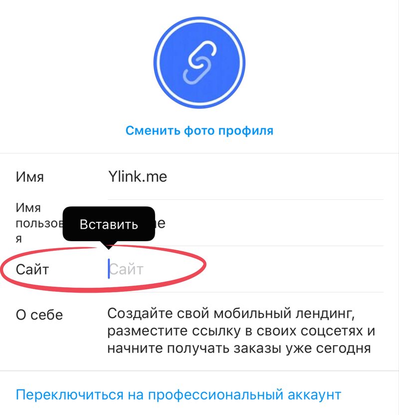 создать ссылку на профиль