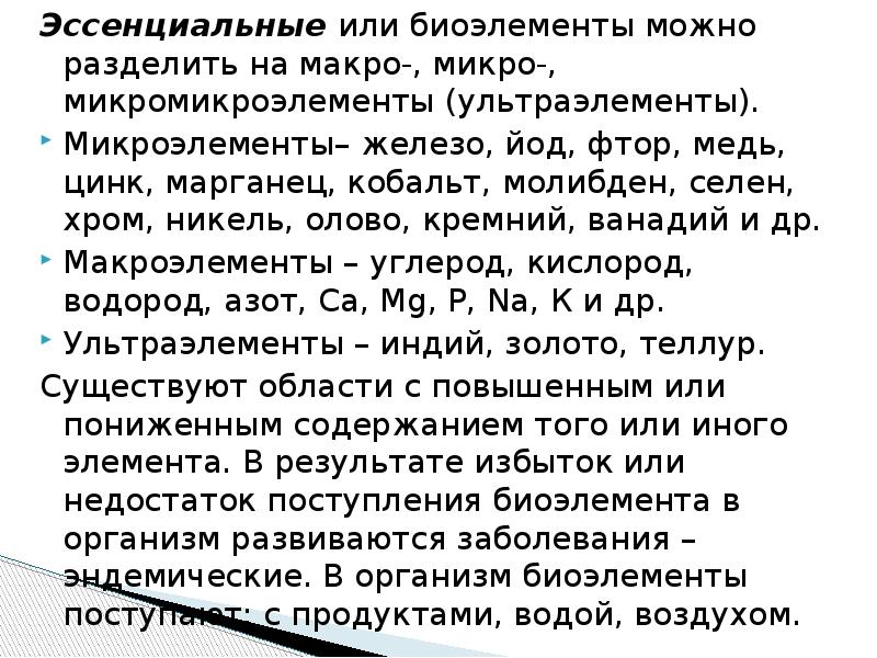 ссенциальные элементы