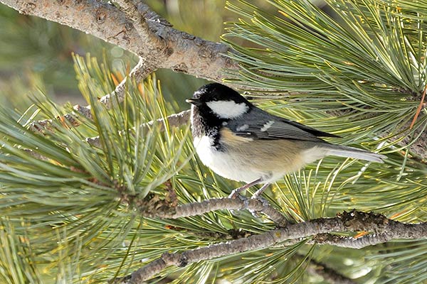 cinciallegra (Parus major) è lunga circa 15 cm ed ha un piumaggio verdastro nelle parti superiori e giallastro in quelle inferiori, il vertice e la gola sono nere, le guance bianche ed una striscia nera longitudinale attraversa l'addome .