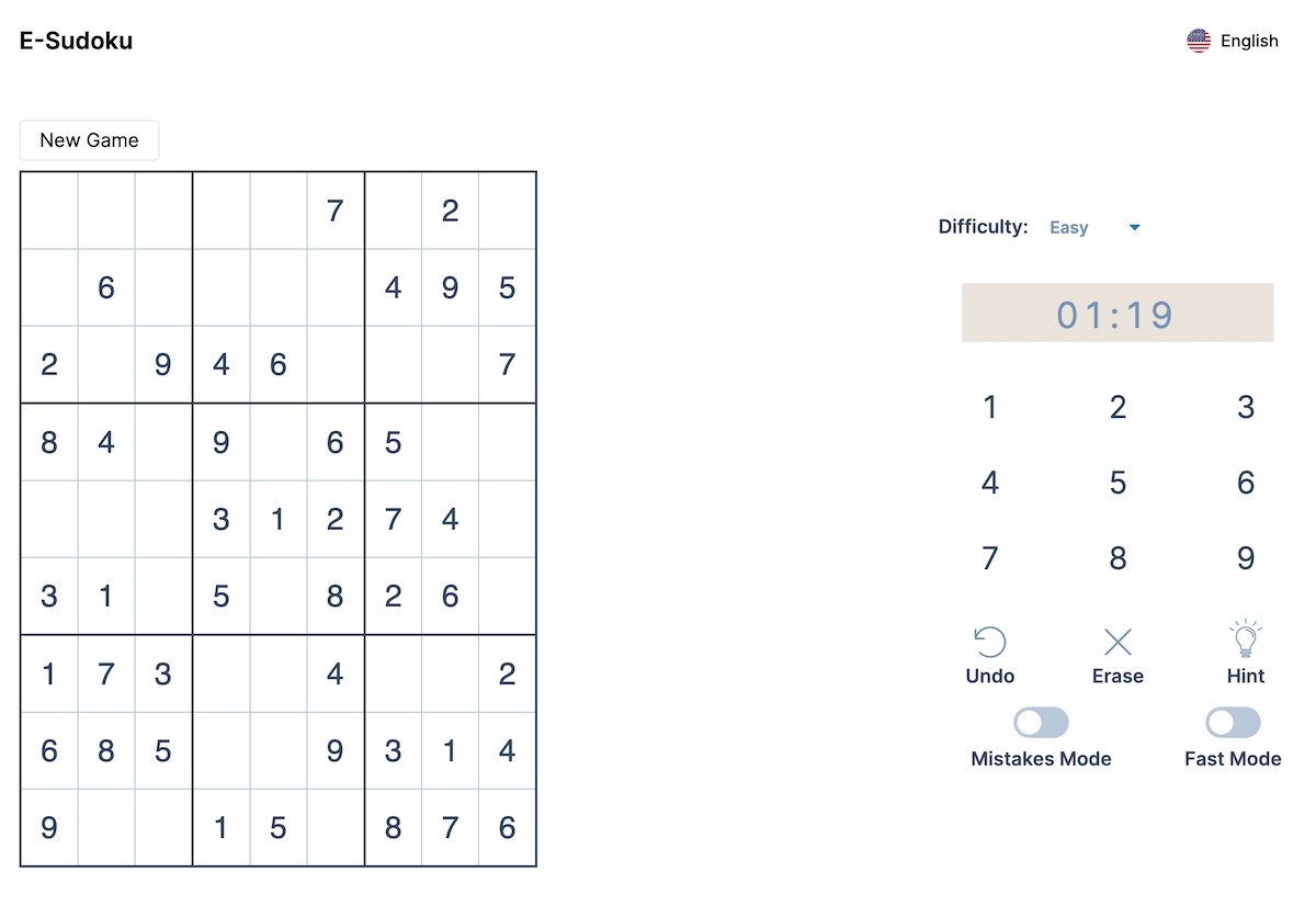 Play sudoku online with E-sudoku for free. From easy to hard levels are available to play. Solve sudoku daily to make your brain sharper.
