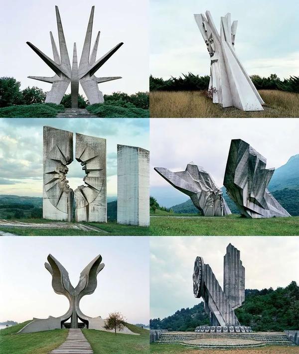 除了苏联,粗野主义还在南斯拉夫的土地上绽放。南斯拉夫是一个奇特的地方:它信奉自己的社会主义,被夹在苏联和西方之间,于是把两者的文化相结合,诞生出了似乎不属于这个星球上的雕塑,自成一派。