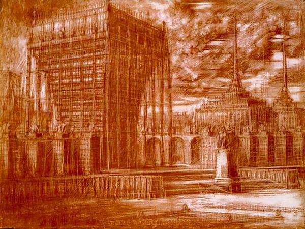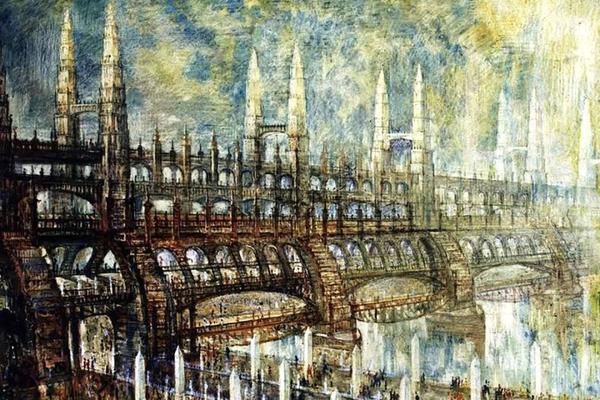 但后来,这位大师的艺术风格被斯大林扼杀了。深受打击的他把构成主义复杂化,并结合哥特风,造出了一种非常特别的阴暗建筑艺术。只要放一些他的手稿在这儿,你一定就能看出黑魂和血缘的建筑灵感来自哪儿。