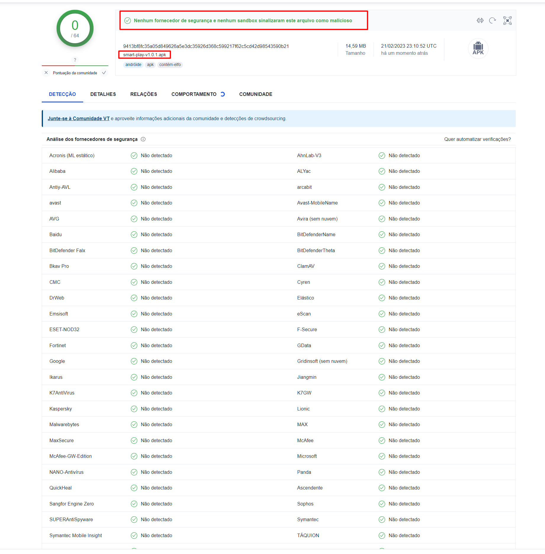Uma prova disso e isso aqui o vírus total um site de análise mundial de vírus que analisa e detecta arquivos maliciosos em apks e afins