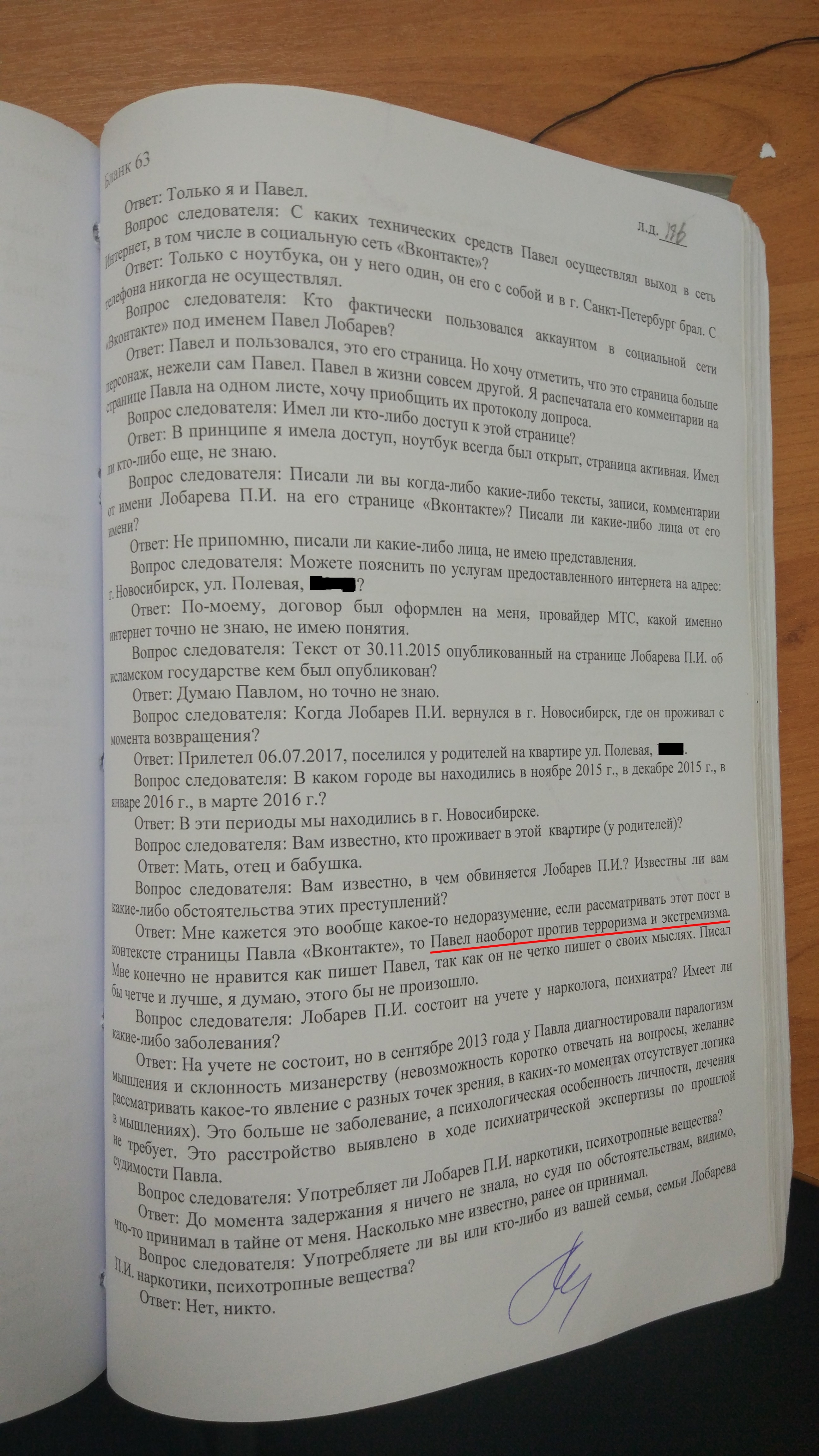 Pavel26.07.17 Гришина допросила мою жену. Относительно эпизода с веществом свидетель, как и все остальные свидетели, пояснила, что не знает, кому оно принадлежит. Относительно эпизода с заметками свидетель сообщила, что, по её мнению, я против терроризма и экстремизма. Также она распечатала некоторые мои комментарии с моей страницы во "вконтакте", в которых я разъяснял свою позицию относительно тех мыслей, которые иногда публиковал, и попросила приобщить их к материалам дела. Из приобщённых к материалам дела по просьбе свидетеля моих комментариев следовало, что мой образ в интернете совсем не тождественен моему реальному образу, что моя страница - это что-то типа художественного вымысла, а некоторый радикализм присутствующий на ней является всего лишь следствием моего желания попиздеть о разных вещах при отсутствии такой возможности в реальной жизни.