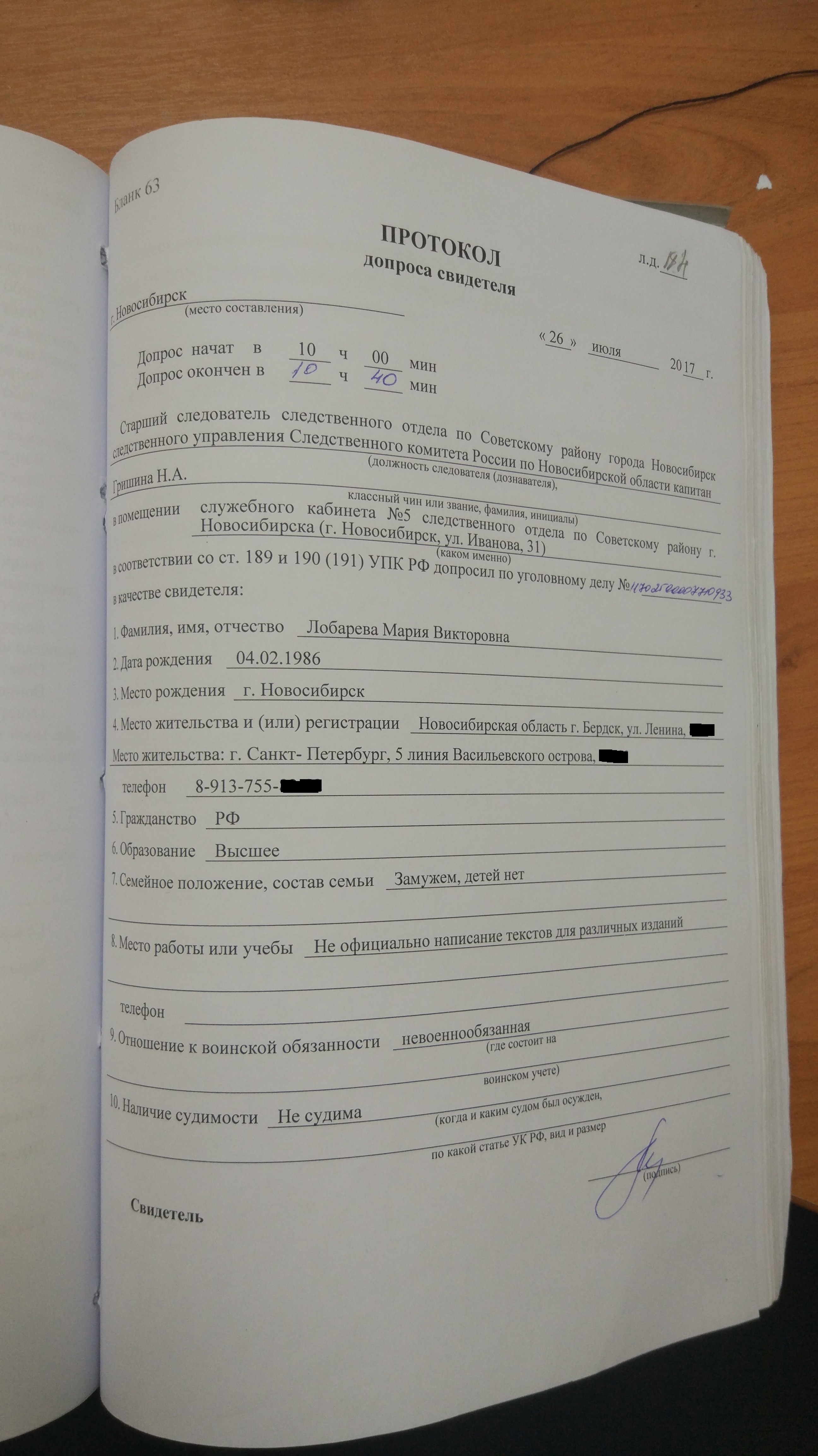 26.07.17 Гришина допросила мою жену.
